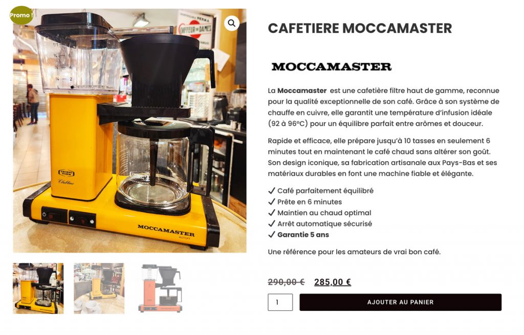 Offrez-vous une extraction parfaite avec la Moccamaster, référence incontournable des amateurs de café. Fabriquée avec précision, elle garantit un café riche en arômes, équilibré et toujours à la bonne température.